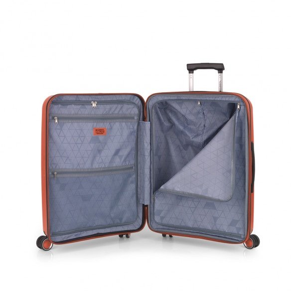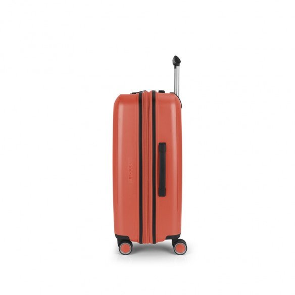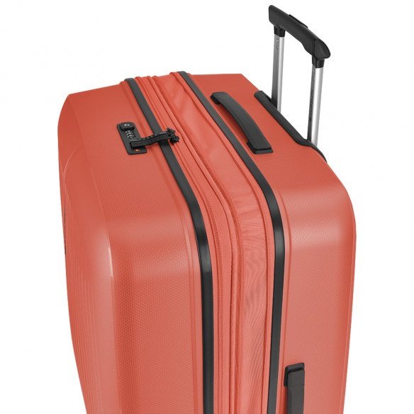 Maleta mediana rígida, expandible y 4 ruedas dobles multidirección. Fabricadas en Polipropileno. Su interior esta compuesto por un forro de material reciclado, con doble separador y bolsllos. Cremallera de seguridad. Cerradura TSA. 10 años de garantía. Medidas sin y con expandible: Maleta Mediana: 45x65x27/30 cm – Peso: 3,4 kg – Capacidad: 70/77,8 L