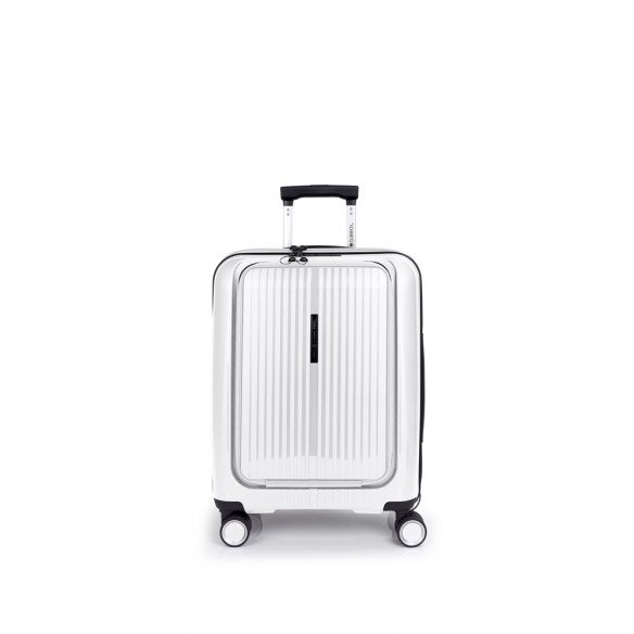Maleta cabina con bolsillo frontal rÃgida, con expandible y con capacidad hasta 41,7 L. Fabricada en polipropileno. Su interior está compuesto por un forro de material reciclado, con doble separador y bolsillos. 4 ruedas dobles. Cuenta con un bolsillo frontal para el portátil de 15,6». Cremallera de seguridad. Cerradura TSA. Medidas sin y con expandible: Maleta cabina con bolsillo frontal: 40x55x22/25 cm – Peso: 3,1 kg – Capacidad: 41,7/47,4 L. «