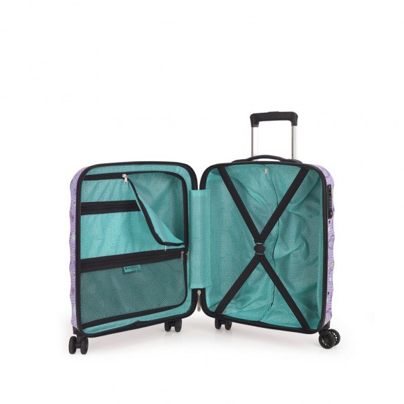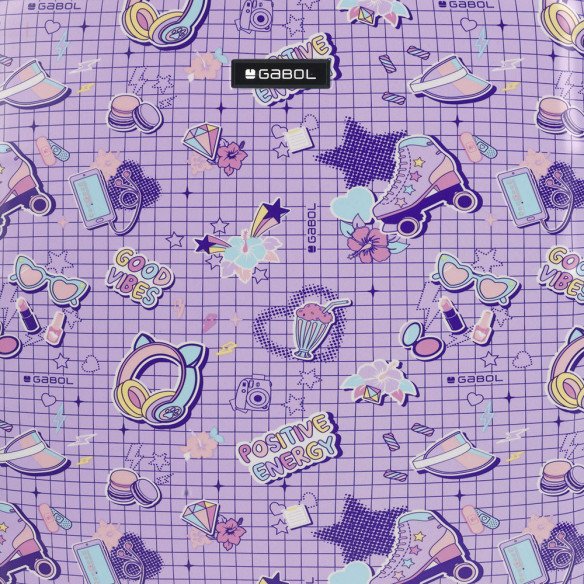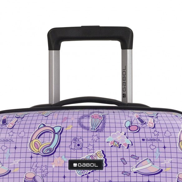 Maleta de cabina Gabol FUNNY. Colección Funny de Gabol, con un bonito estampado de elementos simbólicos escolares sobre un fondo lila. Maleta de cabina con 4 ruedas dobles, con capacidad total de 37,6L. El material de fabricación es ABS y policarbonato y su interior está compuesto por un forro de alta calidad con bolsillos. Maleta de cabina apta como equipaje de mano. Incluye cerradura TSA. Medidas Maleta Cabina: 40x55x20 cm